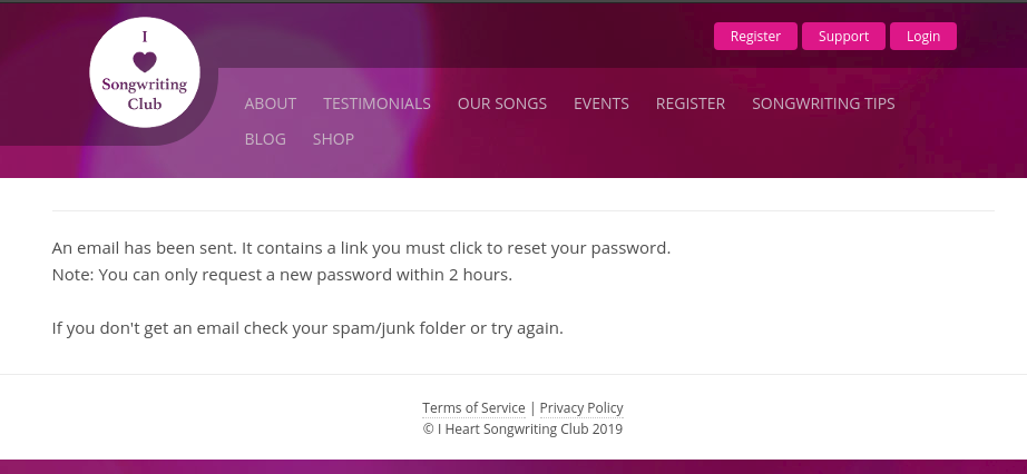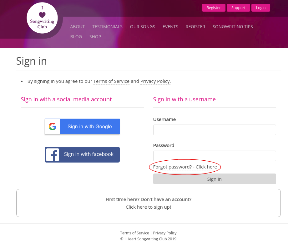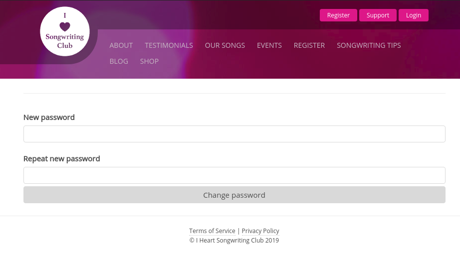 8. After changing your password you should be logged in automatically. If not visit the login page again, enter your username and your new password - https://share.iheartsongwritingclub.com/login